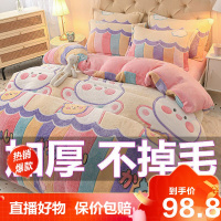 [旗舰直营]网红款加厚冬季牛奶绒四件套珊瑚绒床单双面绒被套法兰绒床上用品冰星梦