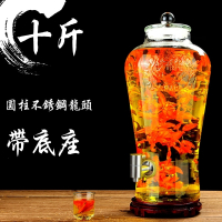 玻璃泡酒瓶带龙头5斤10斤15斤人参泡酒坛子玻璃瓶密封罐家用 10斤+圆柱不锈钢龙头+底座