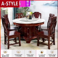 苏宁放心购全实木餐桌椅组合大理石圆形带转盘家用吃饭中式花椅子厂家直销A-STYLE