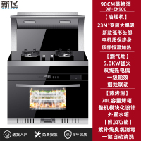 新飞集成灶蒸烤消箱一体变频体感电机自动清洗侧吸下排油烟机家用 90CM弧形头部蒸烤消变频电机70L大容量顶部加热 气电两