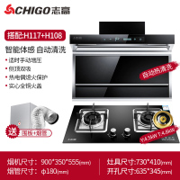 Chigo/志高抽油烟机燃气灶套餐家用厨房烟机灶具套装自动清洗特价 【H117+H108】智能体感+自动清洗+猛火嵌入式