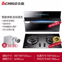 Chigo/志高抽油烟机燃气灶套餐家用厨房烟机灶具套装自动清洗特价 智能体感+自动清洗+方形嵌入式猛火4.8kw双灶