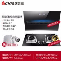 Chigo/志高抽油烟机燃气灶套餐家用厨房烟机灶具套装自动清洗特价 智能体感+自动开合面板+自动清洗+圆形4.2kw双灶