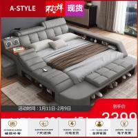 苏宁放心购真皮床智能按摩现代简约榻榻米床1.8米多功能双人储物软婚床A-STYLE