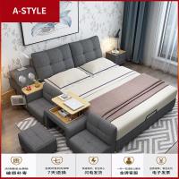 苏宁放心购床现代简约实木主卧床1.8米布艺床双人床多功能榻榻米床智能婚床A-STYLE家具
