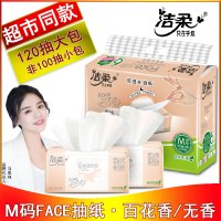 洁柔抽纸 M码3层无香120抽FACE系列可湿水面巾纸餐巾纸妇婴适用家用卫生纸6包提装[商超款]