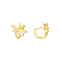 apm MONACO金黄色镶晶钻蜜蜂耳环925银耳饰女士时尚气质镶晶钻穿孔耳坠首饰AE10263OXY