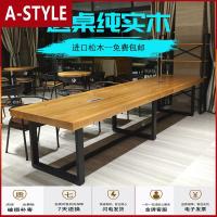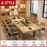 苏宁放心购实木会议桌长桌办公桌洽谈桌椅组合简约现代原木长条桌loft写字台A-STYLE家具
