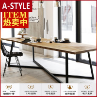 苏宁放心购工业风办公桌 LOFT实木洽谈桌椅组合北欧长方形小型会议桌长桌6人A-STYLE