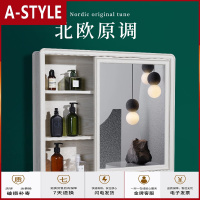 苏宁放心购北欧浴室镜柜实木挂墙式厕所镜箱卫生间镜子带置物架洗漱收纳一体A-STYLE