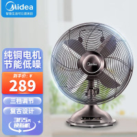 美的(Midea)电风扇FT30-20A家用怀旧桌面台式摇头送风学生宿舍大风力低噪复古台扇4叶手动3档金属扇