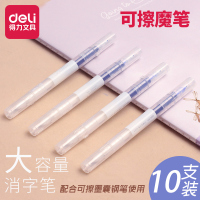 得力delis626消字笔10支魔笔复写笔小学生用一头可擦一头复写无痕可擦钢笔的大容量消字笔双头魔擦纯蓝消字复写笔