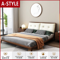 苏宁放心购实木床1.8米双人床现代简约婚床主卧室家具北欧软靠布艺实木大床A-STYLE家具