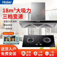 18m³欧式烟机+5.1kw灶具 天然气 Haier/海尔吸排抽油烟机燃气灶套餐厨房家用大吸力顶吸式