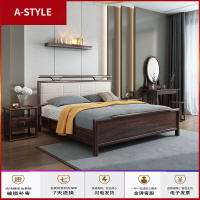 苏宁放心购新中式实木双人床现代简约胡桃木1.8米1.5m主卧北欧储物高箱床A-STYLE家具