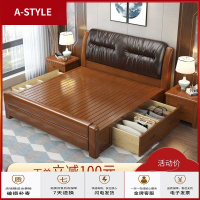 苏宁放心购实木床1.8米1.5米软靠软包床中式胡桃木色双人床简约现代主卧储物A-STYLE家具
