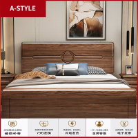 苏宁放心购金丝胡桃木实木床现代简约床主卧新中式1.5高箱储物床双人床1.8米A-STYLE家具