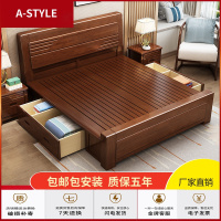 苏宁放心购胡桃木实木床中式1.8米双人床现代简约主卧1.5米婚床高箱储物家具A-STYLE家具