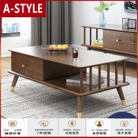 苏宁放心购北欧纯实木创意茶几电视柜组合日式小户型客厅实木茶桌胡桃木家具A-STYLE
