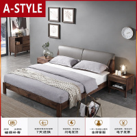 苏宁放心购北美黑胡桃木实木床北欧全双人婚床1.8米1.5m主卧室家具简约真皮A-STYLE家具