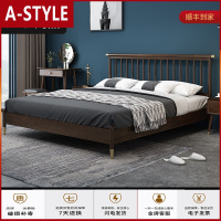 苏宁放心购北欧日式全实木床现代1.8米1.5m双人床主卧室轻奢简约胡桃木家具A-STYLE家具