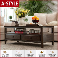 苏宁放心购红橡木实木茶几美式乡村原木自然环保带抽茶几客厅家具胡桃色1.4茶几客厅卧室欧式田园A-STYLE家具