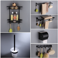 免打孔浴巾架毛巾架欧式黑色太空铝置物架卫浴浴室挂件套装6件套