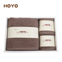 HOYO 浴巾毛巾礼盒套装 日本进口A类纯棉毛巾礼品毛巾浴巾3件套 深咖色 长绒棉系列 2毛巾+1浴巾 33*72c