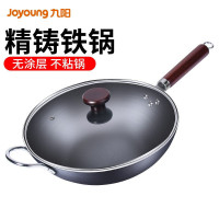九阳(Joyoung)大铁锅炒锅不粘锅家用炒菜锅老式燃气煤气灶通用不锈锅具无涂层精铁不沾锅 34CM带盖-[无涂层-实