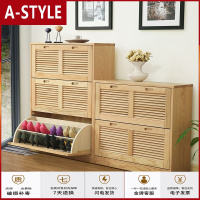 苏宁放心购北欧创意实木家具透气翻斗鞋柜大容量厅柜隔断升级版加宽原木三翻斗客厅卧室欧式田园A-STYLE家具