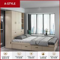 苏宁放心购现代简约榻榻米床衣柜一体1.8米1.5主卧室1.2m气压收纳高箱储物床A-STYLE家具