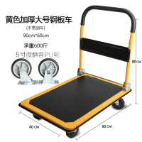 小推车拉货手拉车载物平板小拖车小板车小型手推车工厂车间用 黑黄大90cm*60cm微