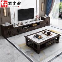 轩将木业 新中式实木茶几电视柜组合岩板现代简约轻奢大小户型客厅家具