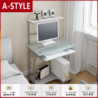 苏宁放心购迷你电脑桌简约现代可移动书桌钢化玻璃省空间小台式卧室桌子家用A-STYLE家具
