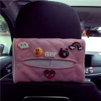 韩国创意汽车椅背遮阳可爱抽纸盒 多功能挂式车用固定车载纸巾盒 皮款粉 云朵爱心彩虹 抖音