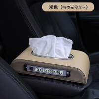 新款车载纸巾盒座式扶手创意汽车用中控夜光临时停车牌餐巾抽纸盒 米色带停车卡 抖音