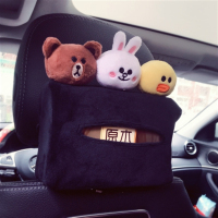 韩国创意汽车椅背遮阳可爱抽纸盒 多功能挂式车用固定车载纸巾盒 黑色 三公仔纸巾盒 抖音