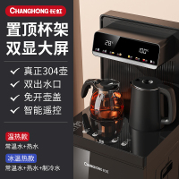 长虹家用智能立式饮水机下置水桶冷热多功能全自动2023新款茶吧机 [置顶杯架双显屏]黑色+双出水口+遥控 温热
