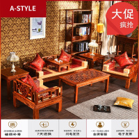 苏宁放心购实木沙发组合新中式经济型仿古花小户型木质客厅组装新古典家具A-STYLE家具