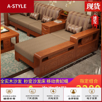 苏宁放心购全实木沙发小户型转角木沙发床经济型农村组合新中式家具成套客厅A-STYLE家具