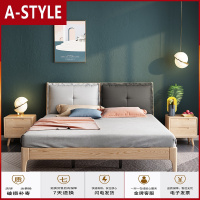苏宁放心购白蜡木实木床北欧简约现代带软靠1.5米1.8米主卧双床民宿家具A-STYLE家具