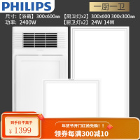 飞利浦PHILIPS风暖浴霸 集成吊顶PTC取暖器换气吹风凉霸LED照明一体卫生间浴室暖风机替代灯暖 [一厨一卫C]浴霸
