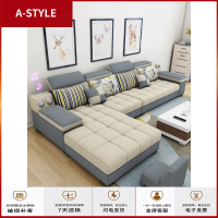 苏宁放心购简约现代布艺沙发大小户型客厅家具整装组合 可拆洗U型套装布沙发A-STYLE家具