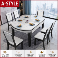 苏宁放心购实木大理石餐桌长方形可伸缩折叠简约现代小户型吃饭圆餐桌椅组合A-STYLE