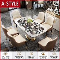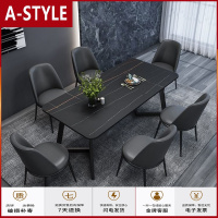 苏宁放心购轻奢极简家用长方形饭桌大理石小户型组合餐桌椅网红组合岩板餐桌A-STYLE