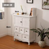苏宁放心购美式地中海复古做旧实木五斗柜抽屉式客厅小柜子储物柜带餐边柜 旧白二层 整装A-STYLE