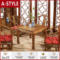 苏宁放心购(定制现做)新中式复古四方桌子大理石餐桌饭店户外家用饭桌碳化实木大八仙桌(具体运费请咨询)A-STYLE