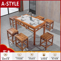 苏宁放心购实木中式长方桌大理石长餐桌小户型吃饭长方形桌子餐桌椅组合餐厅A-STYLE