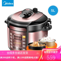 美的电压力锅家用5L双胆电高压锅饭煲正品3-6人 [尊享版]玫瑰金5L