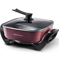 美的6L火锅家用多功能宿舍锅电热锅韩式电火锅电煮面锅煎烤电炒锅 绛紫色[尊享款]